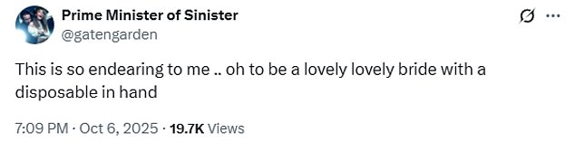 ‘This is so endearing to me… oh to be a lovely, lovely bride with a disposable in hand,’ one person admitted.