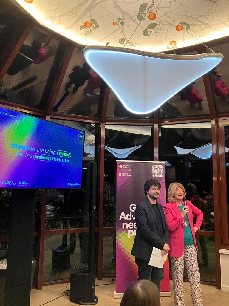 Throughout the evening, guests heard from members of the EACA Young Board — a group of emerging agency professionals who developed the campaign brief — as well as from campaign partners Manon Letouche, head of EU affairs at 5Rights Foundation, and Isabel Kurata, co-founder of ACT Responsible, all underscoring the urgency of cross-border, purpose-driven action to protect children’s rights online.
