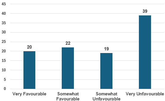 The second problem is that at the time of the survey, Benjamin Netanyahu was already relatively unpopular in Israel. The chart below indicates whether respondents had a favourable or unfavourable view of the Prime Minister. While 42% did have a favourable view, 58% disapproved. More to the point, almost 40% had a very unfavourable view, revealing how deeply disliked Netanyahu is among a significant proportion of Israelis.