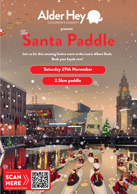 The Santa Paddle will provide a sparkling alternative to the popular Christmas Tractor Convoy which so many people watched but which has been cancelled indefinitely, and continue to give the local community the chance to support Alder Hey while enjoying a wonderful visual spectacle.