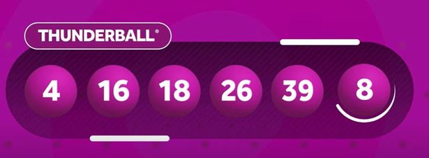 Winning Thunderball numbers: 4, 16, 18, 26, 39. Thunderball: 8