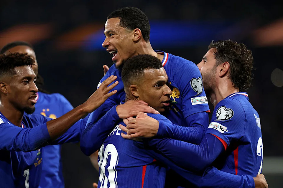 France reached nine points, maintaining a perfect record after three matches. Azerbaijan has one.