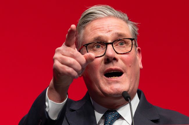 Farage reacting to Keir Starmer’s speech at the Labour Party conference(Image: PA)