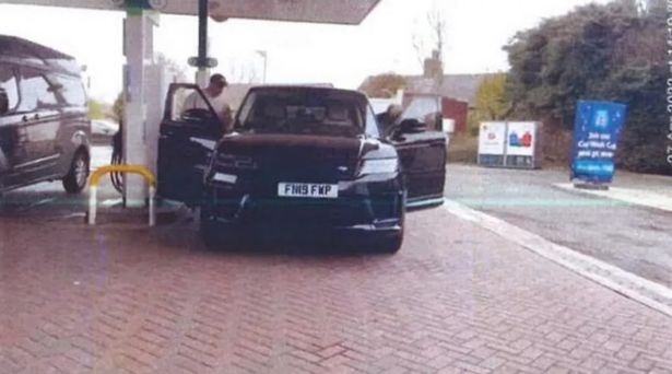 A covert photo taken by a private investigator of Mark and his dad at a petrol station on their way to Huddersfield Hospital in 2022