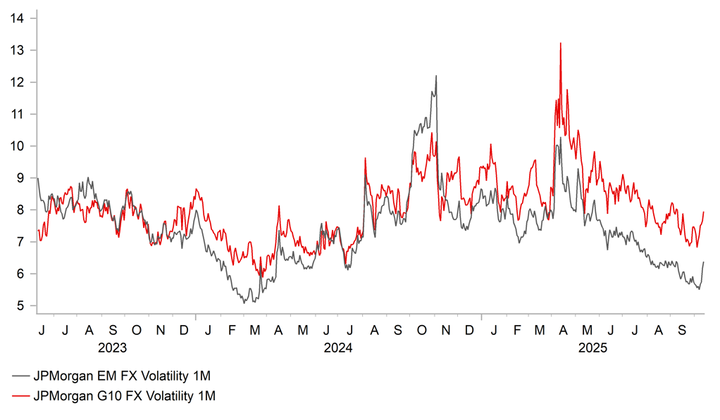 The renewed threat of higher tariffs from President Trump are clearly intended to force China to backdown and reverse recent rare earth minerals. Market participants had been hoping that the worst of the trade conflict between China and the US was in the past. A trade truce reached earlier this year is still in place until 10th November which had lowered US tariffs on imports from China to 30% down from 145%. As part of that trade truce China lowered tariffs on imports from the US to 10% down from 125%. If President Trump follows through on his new plan to raise tariffs on imports from China by 100% it would lift the overall tariff rate back up closer to the highs from earlier this year at the worst point of the trade conflict. However, we remain hopeful that the 100% tariff won’t be implemented and even if it is then it is unlikely to last long. As we saw earlier this year neither side can tolerate such high tariffs for long and the comments from President trump over the weekend again point towards a path for de-escalation. As a result, the trade threats may just contribute a more volatile FX market in the near-term and trigger some unwind of carry trades.