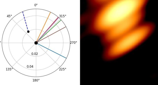 So, they went back to the RadioAstron map of the quasar’s light and identified several features associated with the astrophysical jet from a feeding black hole. They also calculated how the motion of the secondary black hole would change the path of its jet.