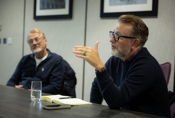 Potential Cardiff investors Gareth West (centre) and Niels Juul (left) discuss their plans(Image: Gareth Everett/Huw Evans Agency)