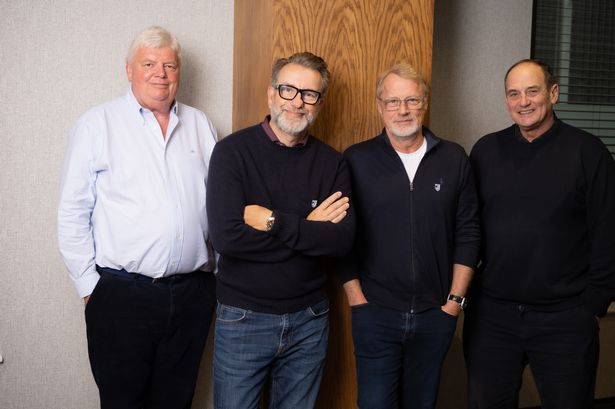 Potential new Cardiff Rugby investors Martyn Ryan (left), Gareth West (centre left), Niels Juul (centre right) and Reg Clark (right)(Image: Gareth Everett/Huw Evans Agency)