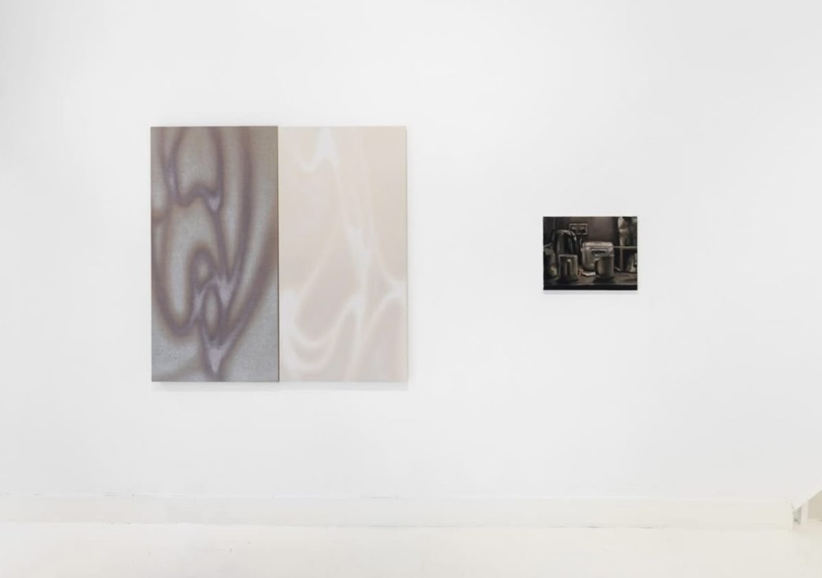 Upon entering, the ordinary details of daily life that are often overlooked are amplified. Sound becomes another dimension, made visible; neglected scenes acquire their own personalities. Kettles, coffee cups, and toasters seem to come alive. Everything surrounding us, all the easily ignored fragments of existence, reappear vividly on the canvas. At the very entrance, New Geographies performs its first act of “cleansing” upon us.