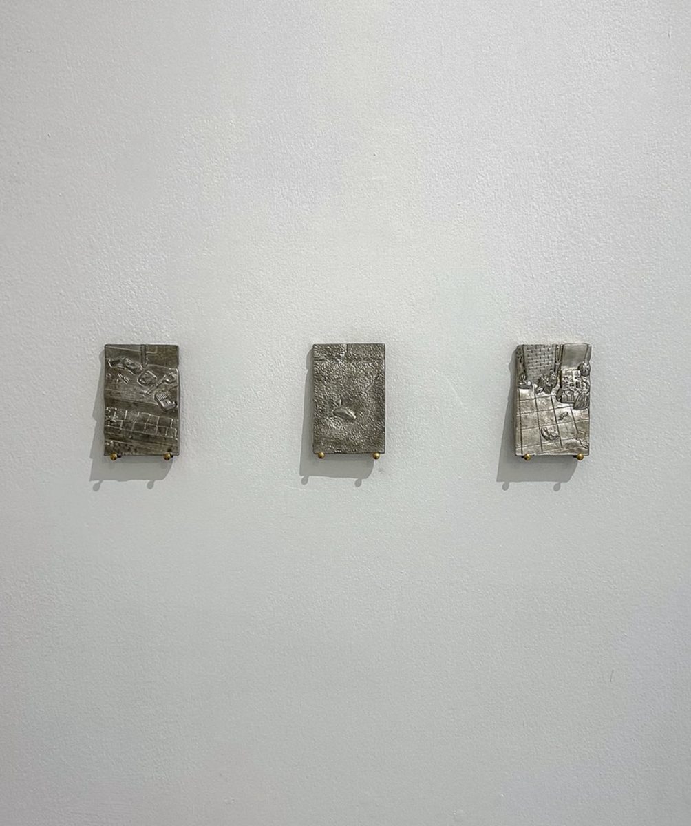 Together, their works point to another dimension of geography, moving from the inner digital and luminous models of perception to the outer everyday scenes turned into sculptural reliefs. This transformation between energy and matter, immaterial and tangible, also echoes the exhibition’s opening gestures with Lucas Dupuy’s visualization of sound and Leon Scott-Engel’s curved composition and handcrafted wooden frame, which align with the architecture’s angles and walls and emphasize how bodily scale shapes our perception of space.