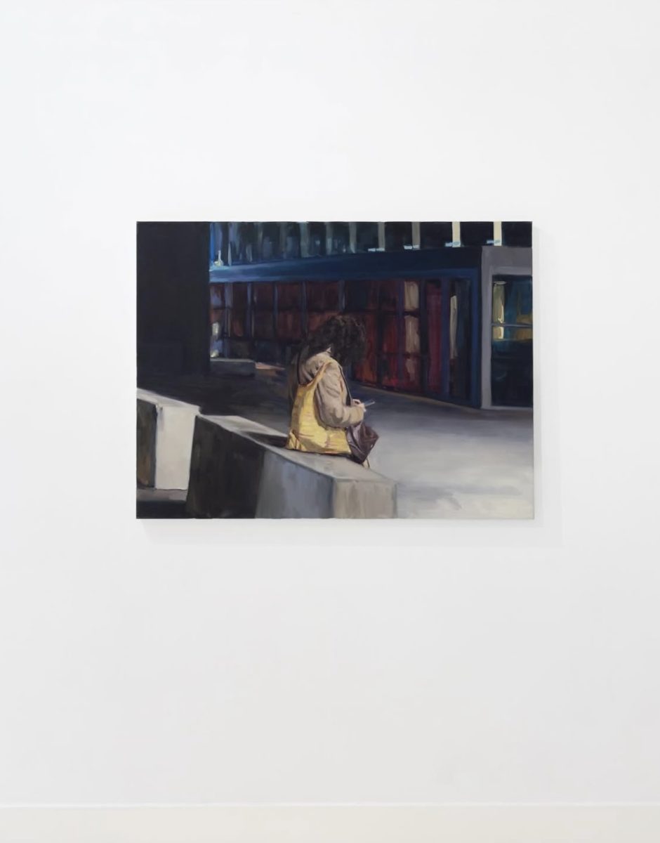 The exhibition space is divided into two levels, forming a bi-layered spatial loop that moves from the outside inward and back outward again. The ground floor opens with a focus on perception and the field of the tangible: Lucas Dupuy’s abstract works derive from the visualisation of sound data, exploring the transformation between auditory experience and spatial structure. Following this, Thomas Cameron’s works focus on anonymous figures in everyday environments. Through his depictions of street corners, shop windows, and waiting areas, Cameron reveals the interchangeability of individual experience within the contemporary urban landscape.