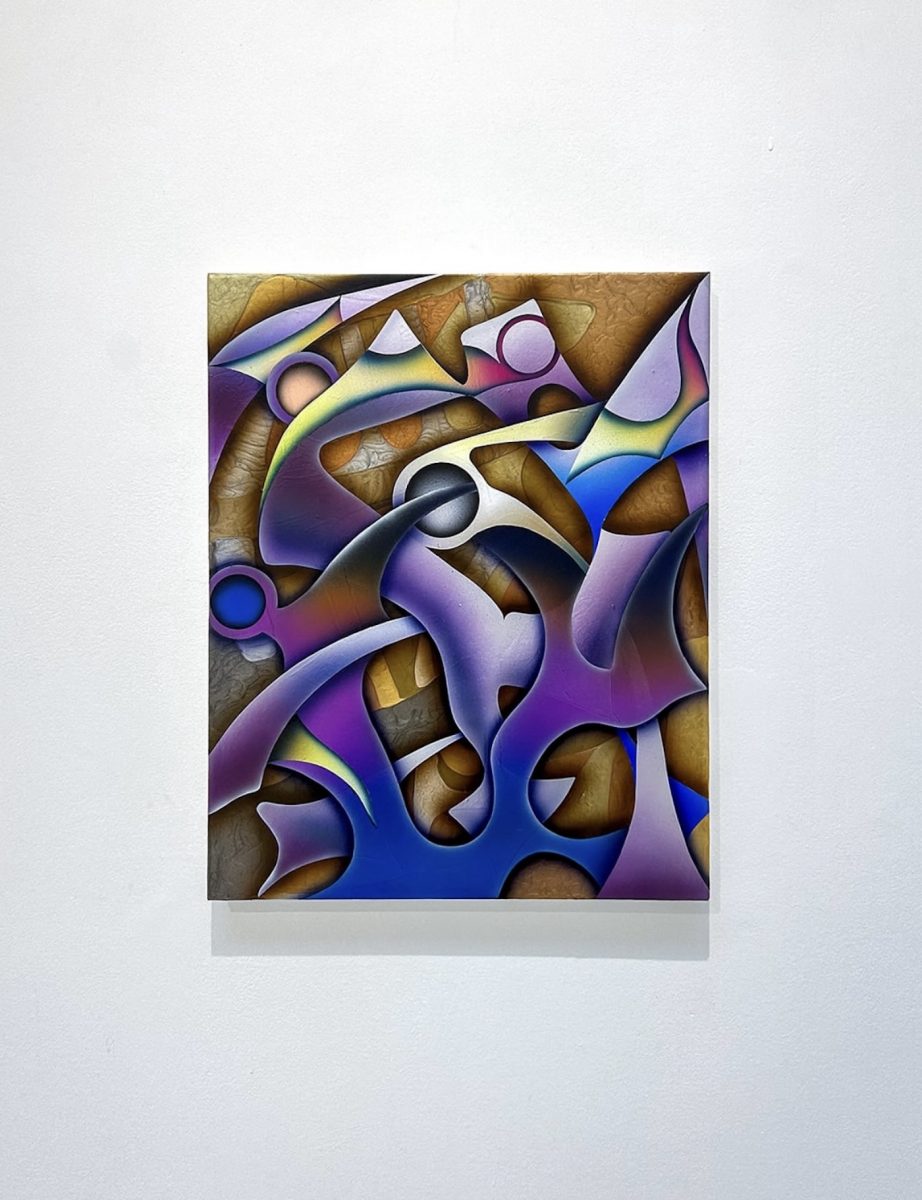 In the latter part of this floor, the figure in Cameron’s street scene gazes leftward and guides the viewer toward the next layer of geography. Harm Gerdes and Nassim L’Ghoul extend the discussion of geography into the realm of media itself. Gerdes’s works seem to amplify a certain kind of perception, an invisible yet ever-present energy. Through a painterly language of digital luminosity, he simulates data interfaces and transforms the landscape into an image re-coded by algorithms and pixels. L’Ghoul’s metallic reliefs, by contrast, are derived from urban detritus and fragments of the street. Through processes of recasting and reconfiguration, these overlooked material traces are transfigured into formal monuments.