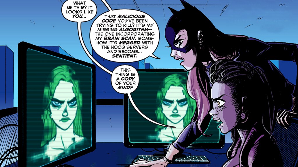 While Barbara Gordon’s Batgirl operated under her own principles and strategies, as a member of the Bat Family, she also made extensive use of the technology that Batman provided. Nowhere was this more evident than in the aftermath of the Joker’s attack on Barbara Gordon in Alan Moore’s The Killing Joke, which left her partially paralyzed and confined to a wheelchair. Unable to operate as she once did as Batgirl, she retired from being a frontline crime fighter. However, as detailed in John Ostrander, Kim Yale, and Luke McDonnell’s Suicide Squad #23 (1987), Barbara found a new space to continue the fight as the computer wizard and information specialist known as “Oracle.”