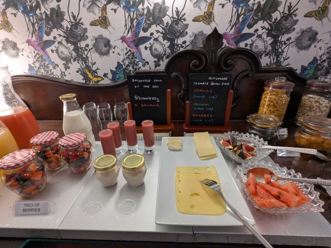 We were impressed by the huge and extremely comfortable bed, the attentive and friendly service, and crucially, the breakfast (a veritable smorgasbord of homemade yogurts, pastries, fruit pots, fruit shots, and perfectly poached eggs).
