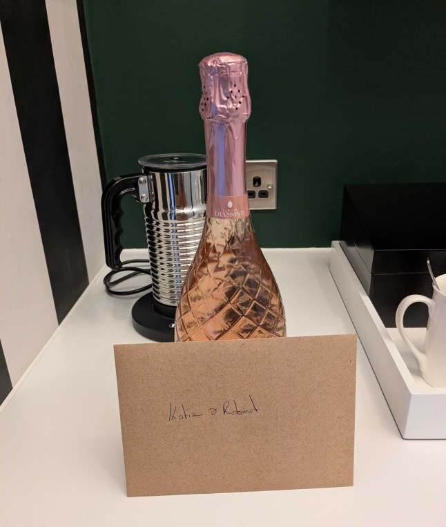 But when we returned to our room (the luxurious Torre suite), a bottle of pink prosecco and a card addressed to ‘such a lovely couple’ was waiting for us.