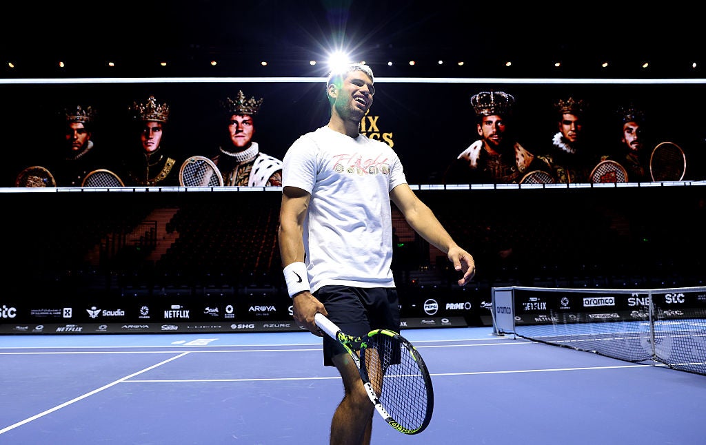 After arriving last night, Carlos Alcaraz has familiarised himself with the match court at the ANB Arena in Riyadh.