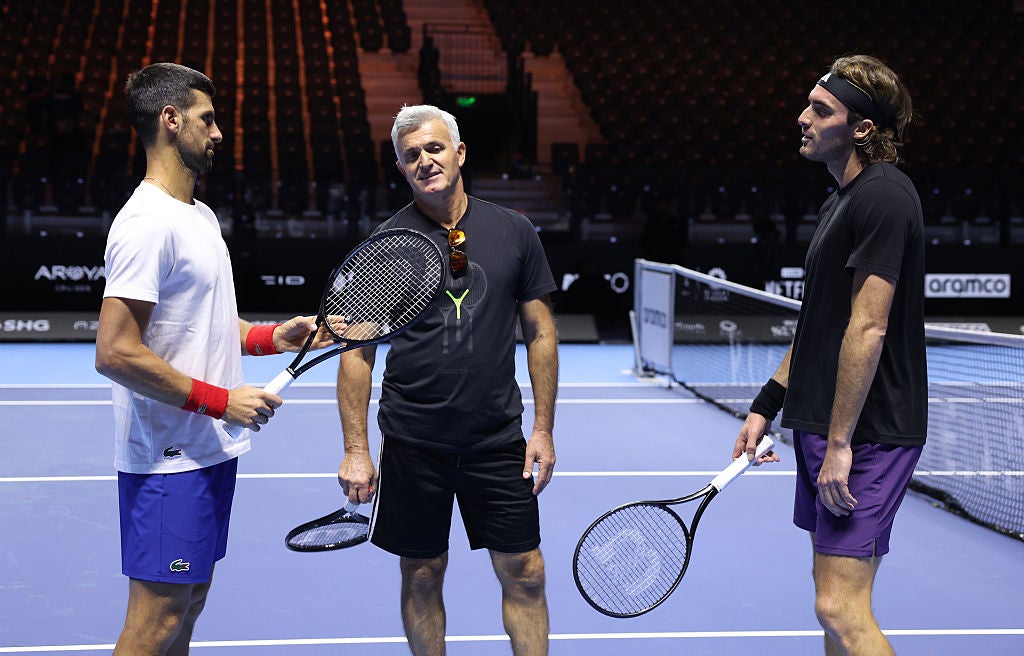 Novak Djokovic has landed in Riyadh ahead of the Six Kings Slam, and was pictured chatting with Stefanos Tsitsipas ahead of his opening match tomorrow.