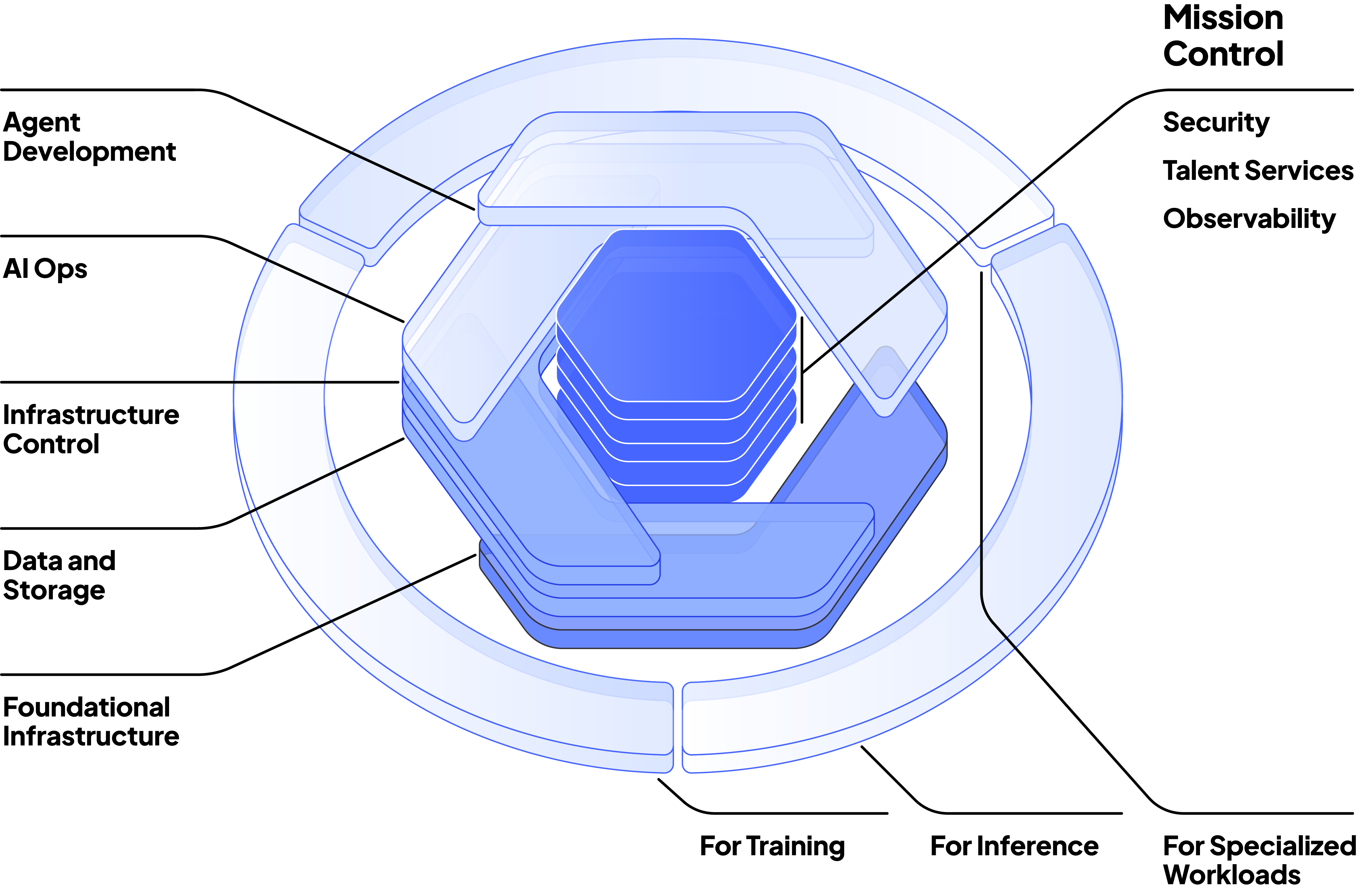 To serve AI developers working on the latest agentic applications, AIOps and Agent Development integrate Weights & Biases and OpenPipe to accelerate experimentation, fine-tuning, and reinforcement learning at scale, bridging model development and production deployment seamlessly. Mission Control connects it all, providing end-to-end visibility, governance, and orchestration across the stack, ensuring every layer operates in harmony to deliver unmatched reliability, transparency, and speed for the world’s most ambitious AI workloads