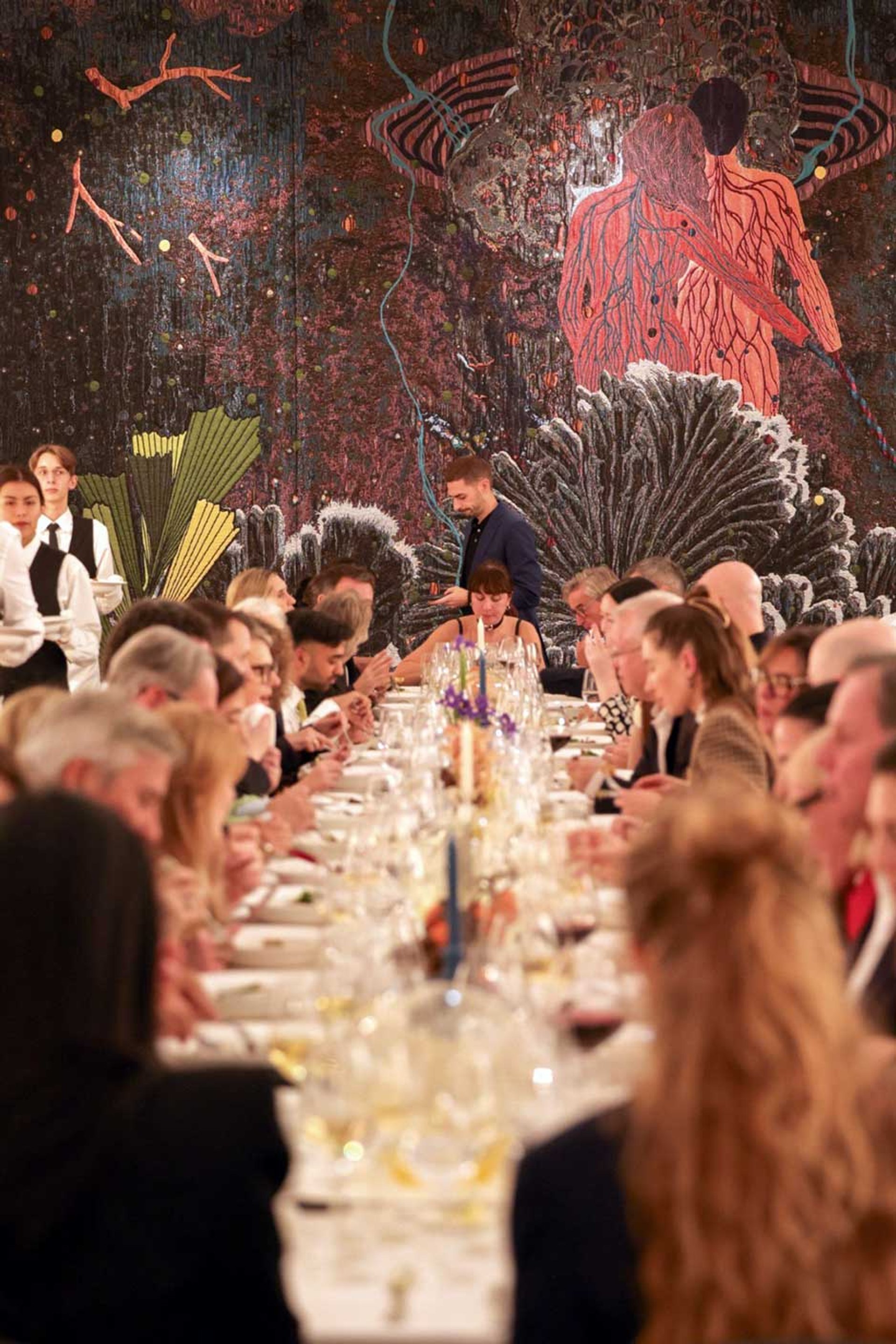 Art world glitterati descended on the Frieze London tent on Thursday evening for the lavish Collectors’ Dinner attended by gallerists, patrons and (some) journalists. Guests including the Frieze owner Ari Emanuel, the dealer Sadie Coles and the collector Christian Levett, joined a throng of luminaries who dined on dishes such as salmon rillettes and coq au riesling. Art world tongues wagged about hot topics of the day—who will win UK Celebrity Traitors?—while quaffing a scrumptious Fortnum’s wine. Goodie bags included Loewe perfume and a BMW test drive experience. As the evening wore on, attendees waited for “a secret live music performance” (“is it Madonna?” said one rather optimistic partygoer). The act turned out to be the Mercury Prize winner Sampha, who wowed the crowd.