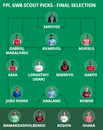 Yet many FPL managers like to Wildcard during international fortnights. Our drafts jump onto nice-looking fixture runs, where West Ham United get a thumbs-up, making Jarrod Bowen (£7.8m) a unanimous Scout Squad choice and part of Zophar’s hypothetical long-term team.