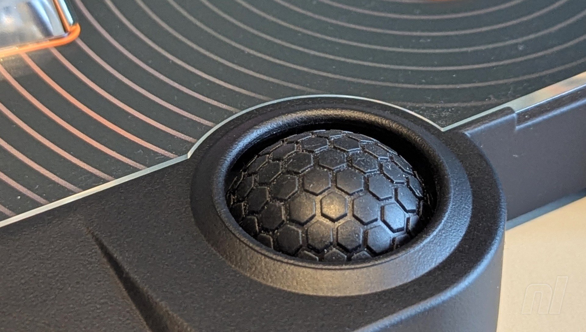 Over on the back, the entire surface is covered with a soft, non-slip fabric with the logo engraved in the centre. It’s lovely stuff, and it keeps things absolutely rock solid on smooth surfaces. If you want to play on your lap, you absolutely can – weighing in at just over 900g, the controller has a fair heft to it when holding it in your hands, but otherwise feels comfortable when resting on your lap.