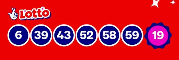 Winning Lotto numbers: 6, 39, 43, 52, 58, 59. Bonus ball: 19