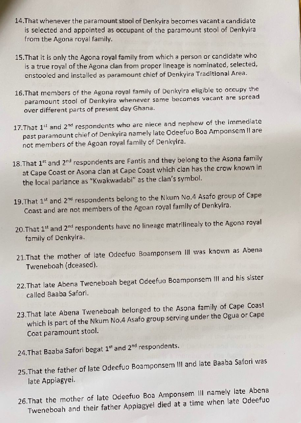 • That Kwame Mensah is ineligible to be nominated, enstooled, or installed as Paramount Chief, not being a member of the Agona royal family.