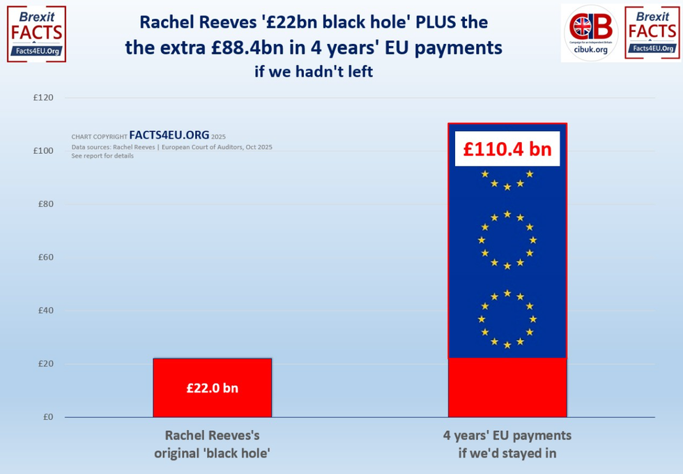 Rachel Reeves current black hole compared to if the UK had stayed in the European Union