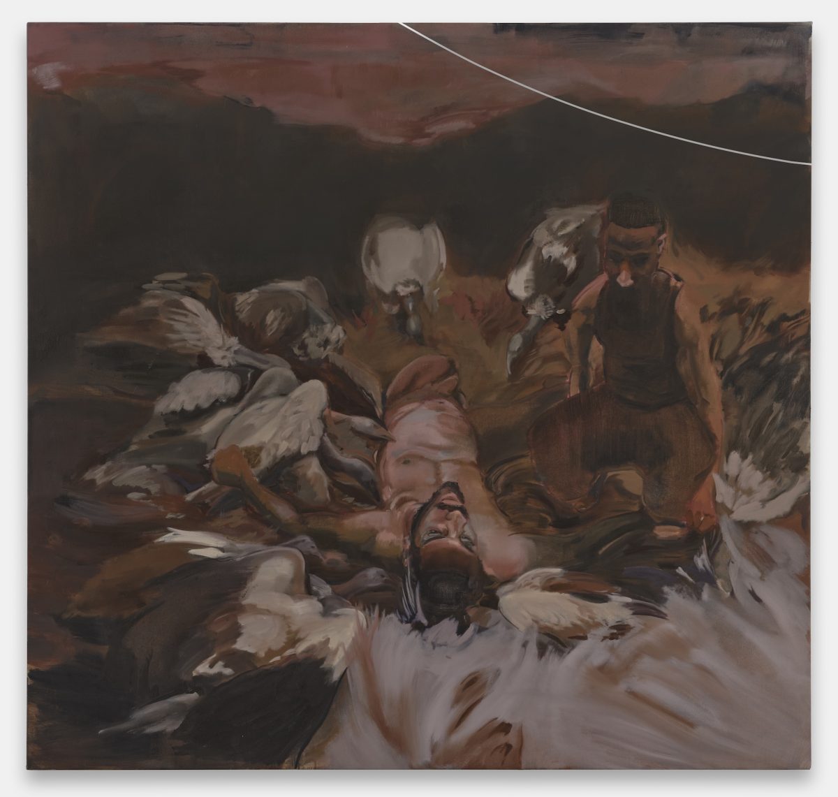 A shoal of carp swim around the feet of a boy in a living room, figures dance around a fire, and vultures pick at the body of a lying person. There’s a wonderful sense of movement in Shaquelle Whyte’s latest paintings that makes you wonder whether it’s one or several figures we’re observing. As with much of his work, the paintings centre on Black male figures, which have been largely ignored in art history. Until 8th November.