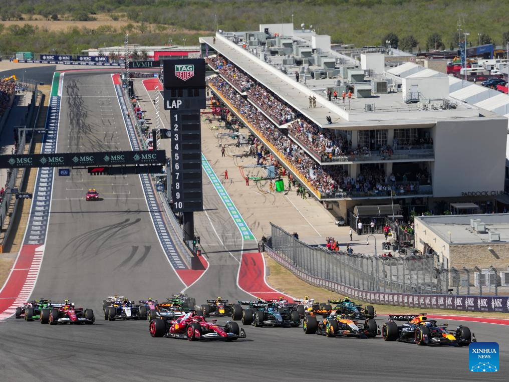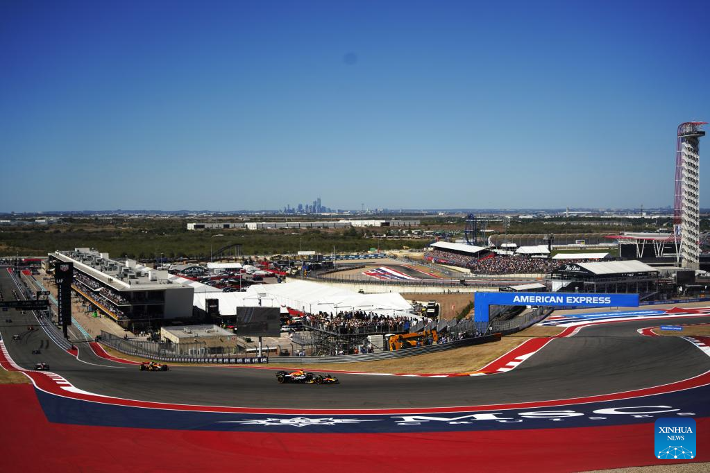 Drivers compete during the race of the 2025 Formula One United States Grand Prix in Austin, Texas, the United States, Oct. 19, 2025. (Photo by Xu Mingnan/Xinhua)