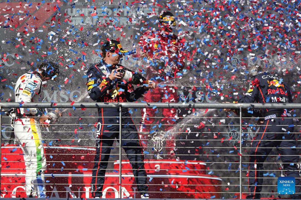 Red Bull’s Dutch driver Max Verstappen celebrates after the race of the 2025 Formula One United States Grand Prix in Austin, Texas, the United States, Oct. 19, 2025. (Xinhua/Wu Xiaoling)