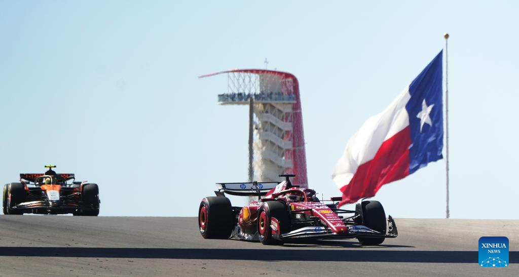 Ferrari’s Monegasque driver Charles Leclerc (R) competes during the race of the 2025 Formula One United States Grand Prix in Austin, Texas, the United States, Oct. 19, 2025. (Xinhua/Wu Xiaoling)