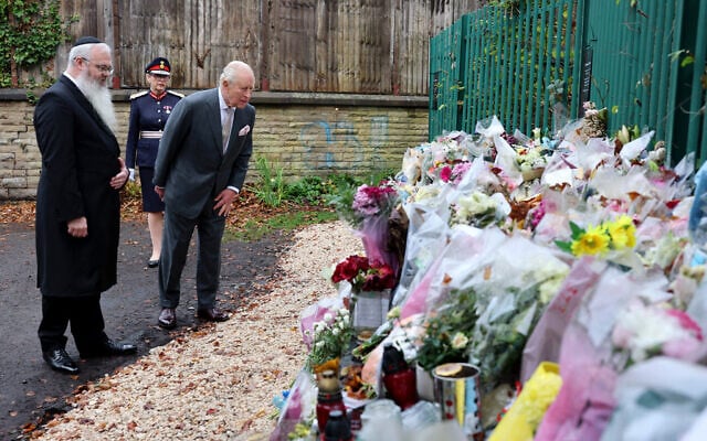 LONDON (Reuters) — The UK’s King Charles III visited the synagogue in Manchester on Monday where two Jewish worshipers were killed earlier this month during an attack by a man who told police he was acting for Islamic State.