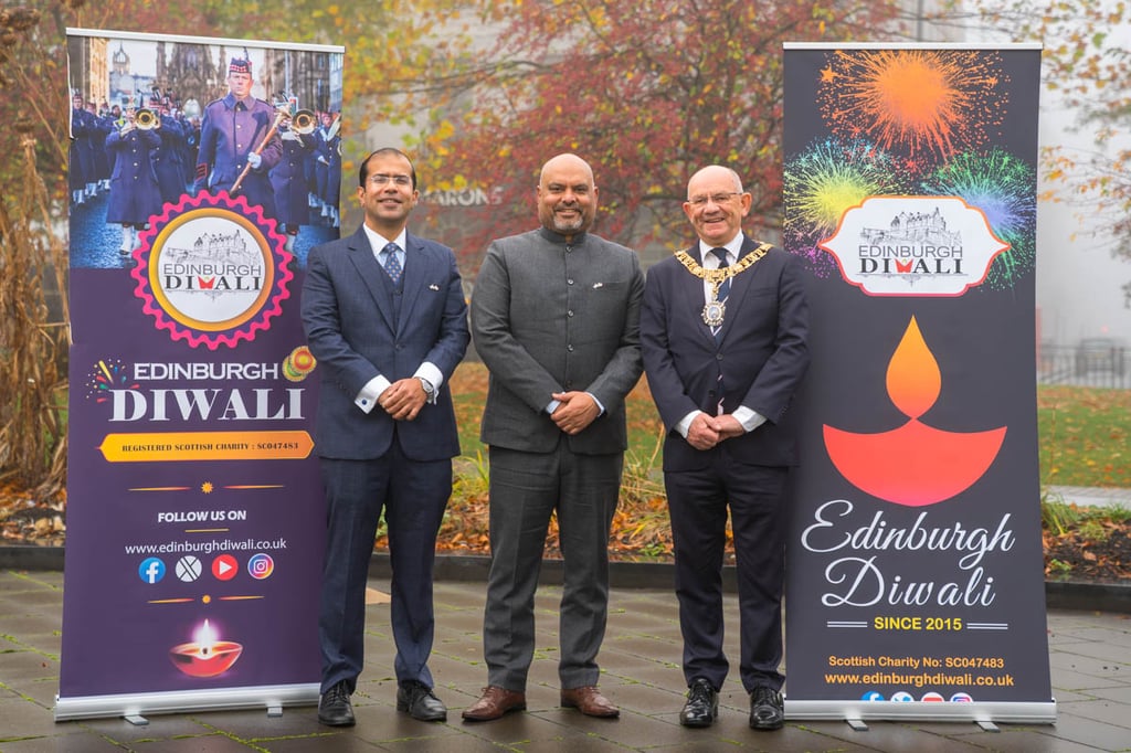 Consul General of India, Edinburgh, Mr Siddharth Malik, President Edinburgh Diwali, Rajnish Singh, Lord Provost and Chair of Edinburgh Diwali, Lord Provost, Robert Aldridge.