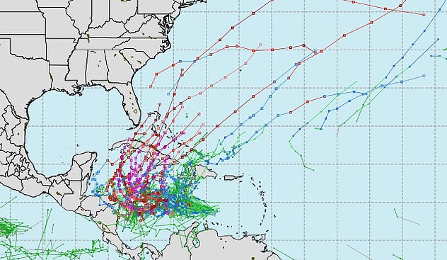 AccuWeather lead hurricane expert Alex DaSilva said in a statement: ‘While we think that the chances of a direct U.S. hit from this storm are low right now, it’s still on the table should the tropical system make it into the western Caribbean.’