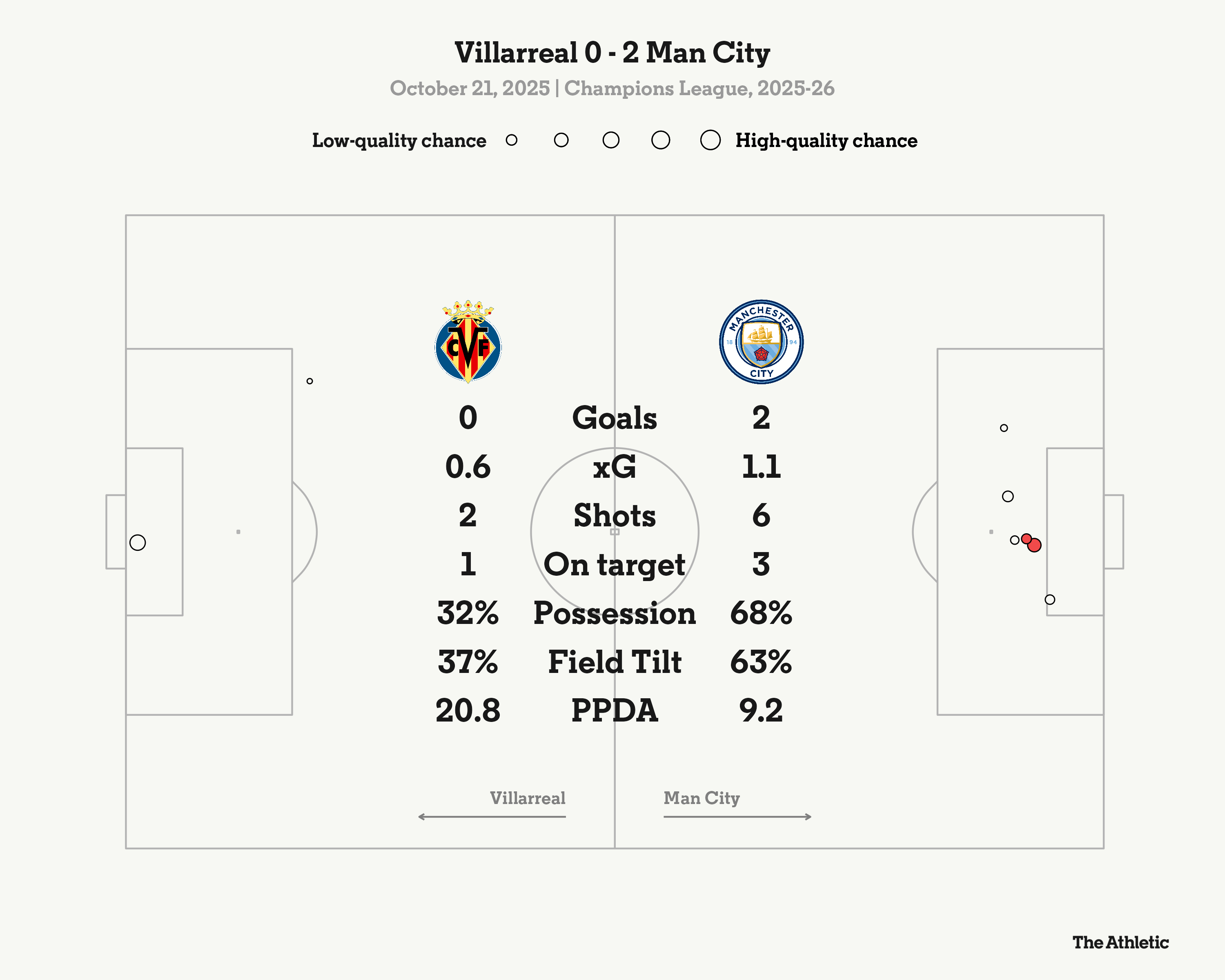 Manchester City continue to quietly impress this season, easing to their second Champions League victory of the league phase with a dominant performance against Villarreal.