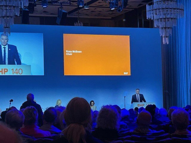 Rhiana Whitson reporting from BHP’s annual meeting in Melbourne this morning. It’s the first time the mining company has held an AGM in the Victorian capital since 2017. It’s also former NAB boss Ross McEwan’s first as BHP chair.