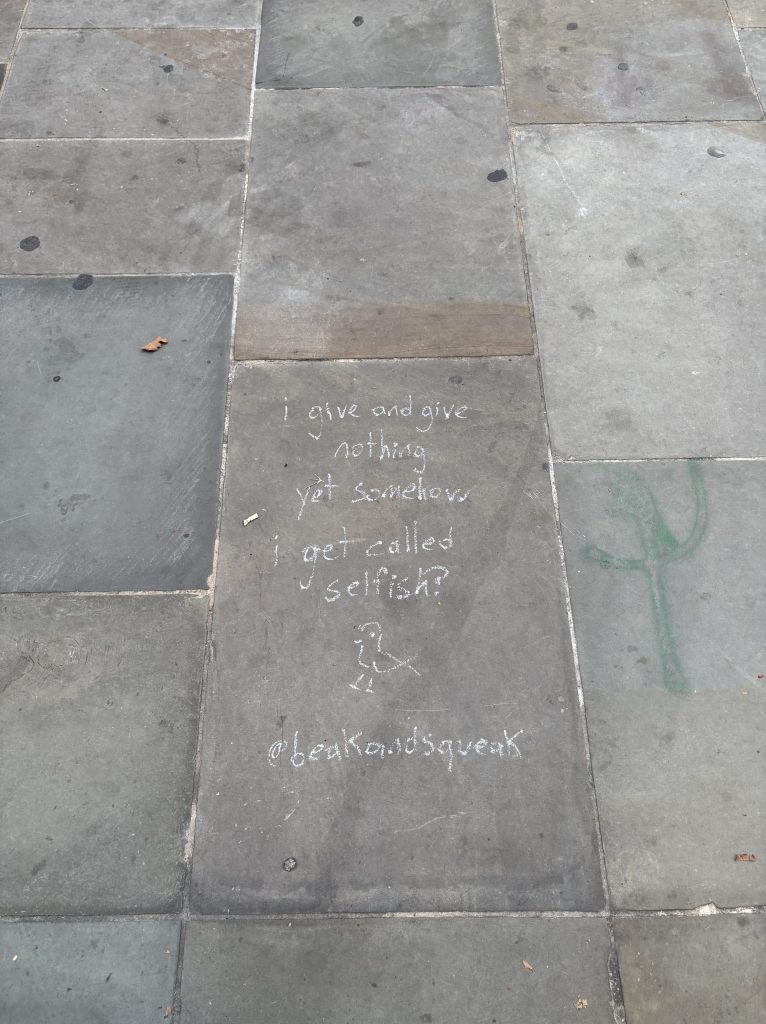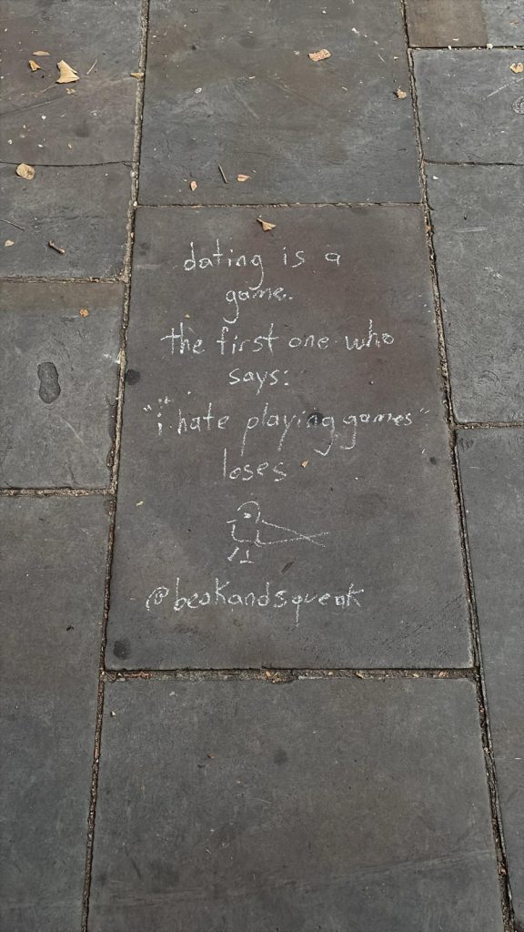 So far, over 300 quotes have been written in chalk on the streets of locations including Chelsea and London Bridge, which have sparked a smile-filled scavenger hunt on Instagram.