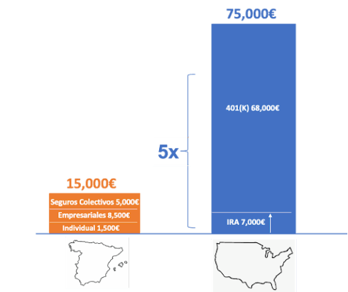 In broad terms, the United States has five times more tax-advantaged plans available for retirement savings than Spain does.