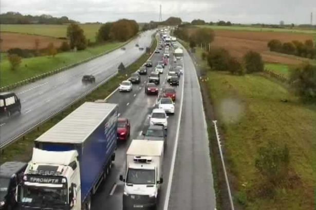 Queues of traffic were seen building in the area this afternoon, where the motorway has been reduced to one lane on a day already blighted by heavy congestion.