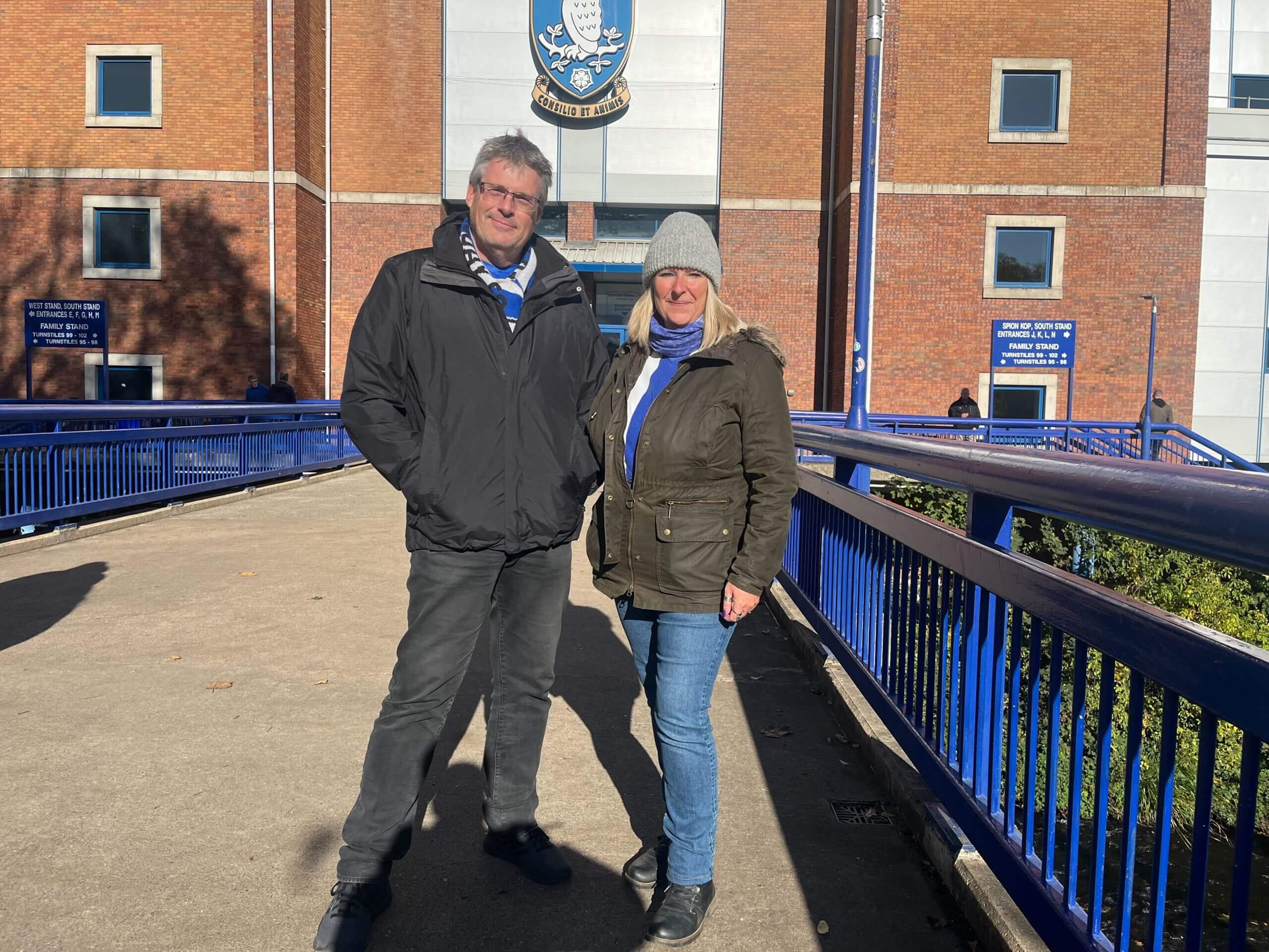 Jo and Andy Snowden outside Hillsborough (Greg O’Keeffe/The Athletic)
