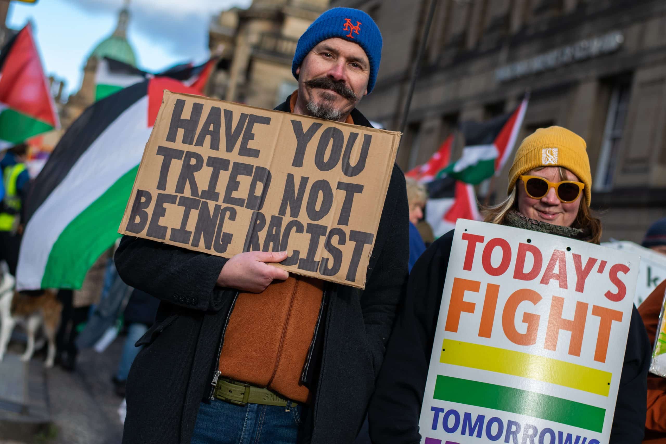 As if there’s some perfectly rational moral position you can twist yourself into, contorted in some way where you can’t see Gaza anymore. If ever you need to learn how not to give a fuck what other people think just go and stand in a group of people who think, controversially, that genocide is bad – give it five minutes and someone will come along and tell you you are wrong: