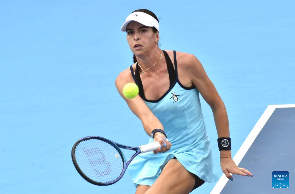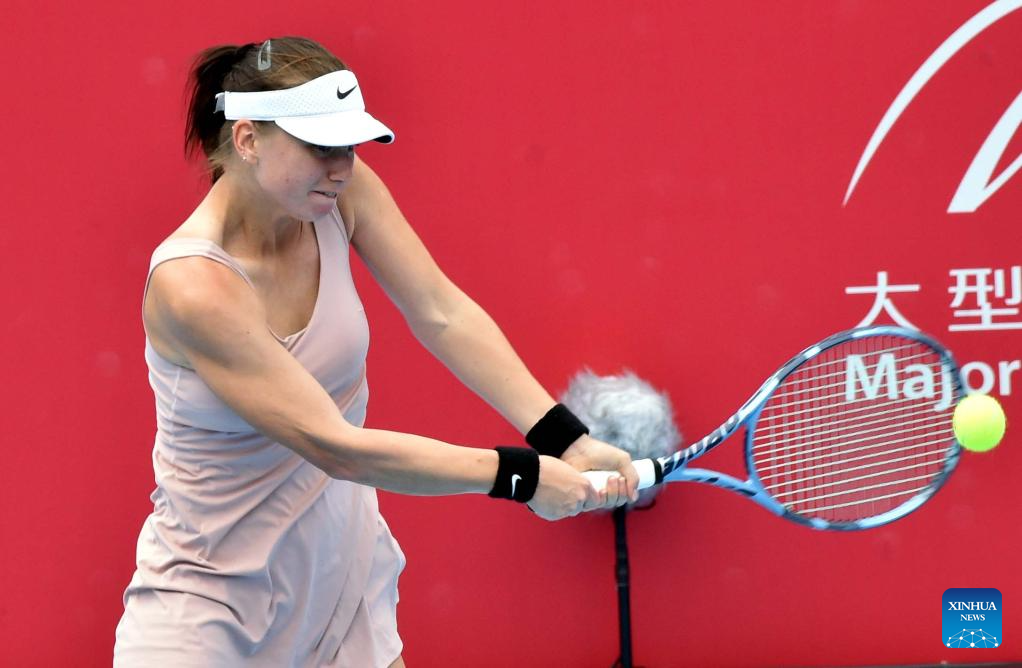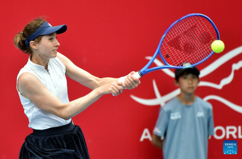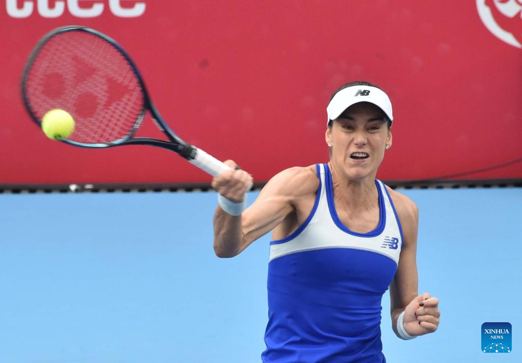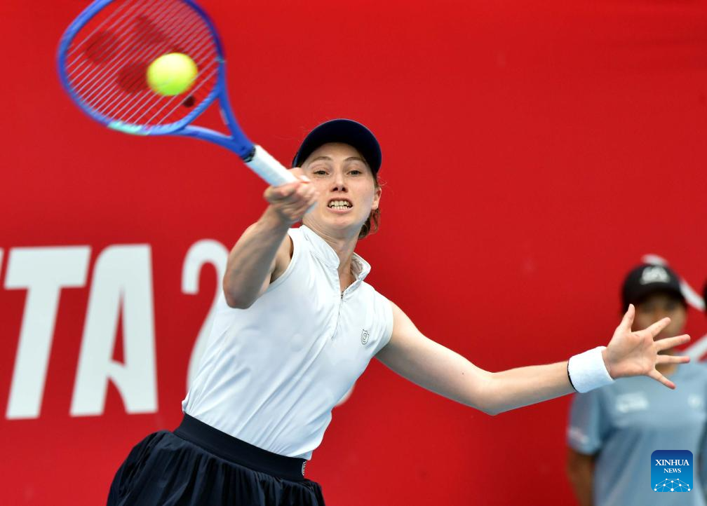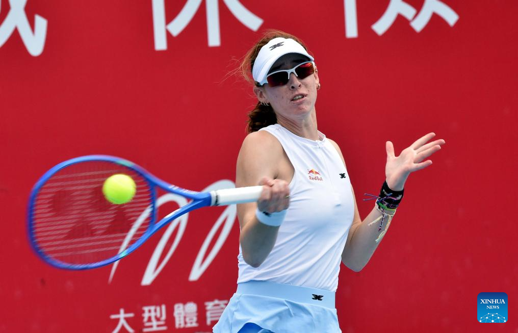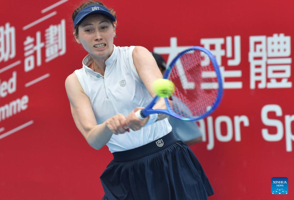 Ajla Tomljanovic hits a return during the women’s singles round of 16 match between Sorana Cirstea of Romania and Ajla Tomljanovic of Australia at the WTA Hong Kong Open tennis tournament in Hong Kong, China, Oct. 29, 2025. (Xinhua/Lo Ping Fai)