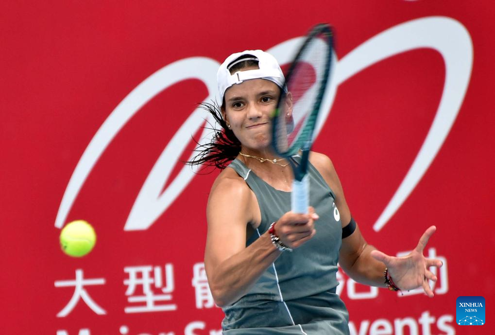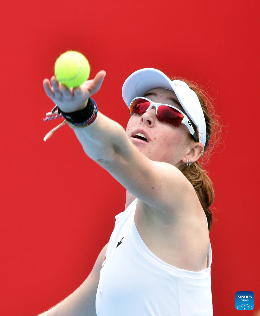 Maya Joint hits a return during the women’s singles round of 16 match between Maya Joint of Australia and Viktoria Morvayova of Slovakia at the WTA Hong Kong Open tennis tournament in Hong Kong, China, Oct. 29, 2025. (Xinhua/Lo Ping Fai)