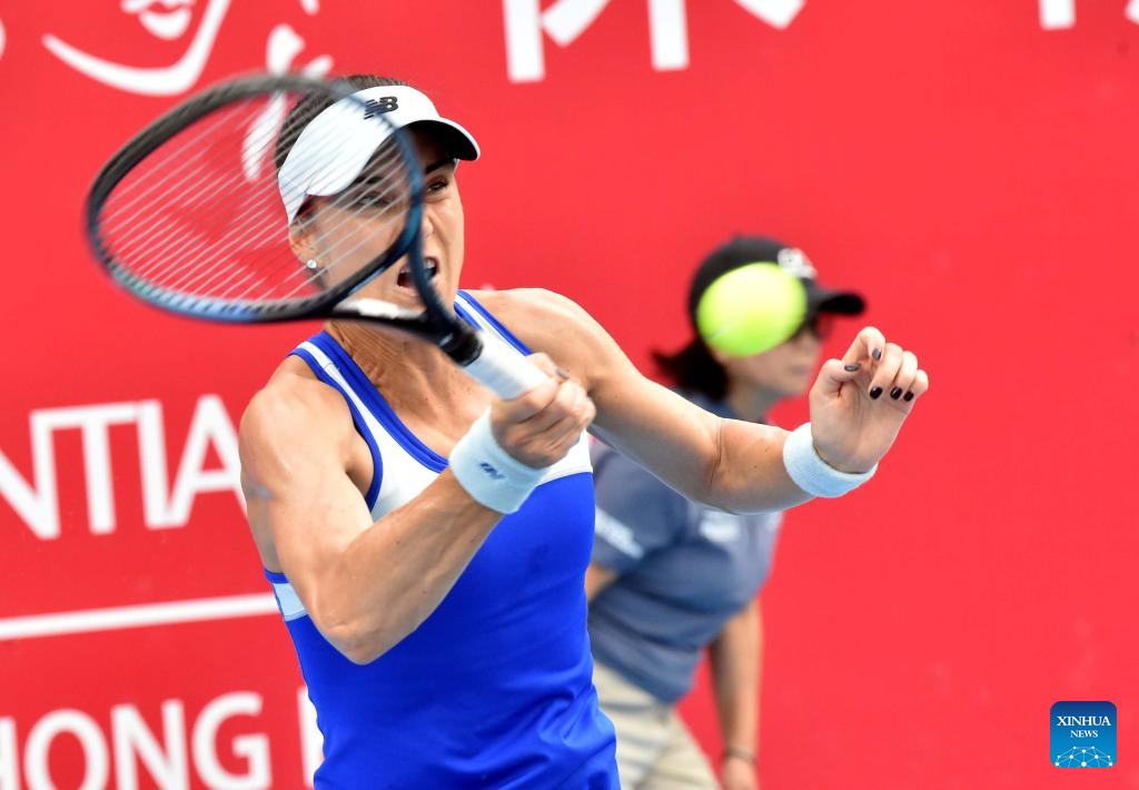 Sorana Cirstea hits a return during the women’s singles round of 16 match between Sorana Cirstea of Romania and Ajla Tomljanovic of Australia at the WTA Hong Kong Open tennis tournament in Hong Kong, China, Oct. 29, 2025. (Xinhua/Lo Ping Fai)
