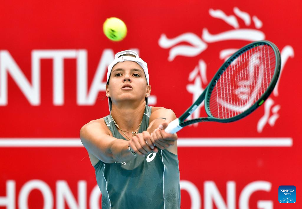 Cristina Bucsa hits a return during the women’s singles round of 16 match between Emiliana Arango of Colombia and Cristina Bucsa of Spain at the WTA Hong Kong Open tennis tournament in Hong Kong, China, Oct. 29, 2025. (Xinhua/Lo Ping Fai)