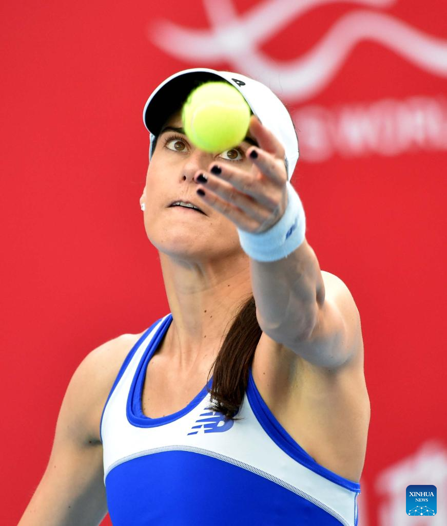 Sorana Cirstea serves during the women’s singles round of 16 match between Sorana Cirstea of Romania and Ajla Tomljanovic of Australia at the WTA Hong Kong Open tennis tournament in Hong Kong, China, Oct. 29, 2025. (Xinhua/Lo Ping Fai)