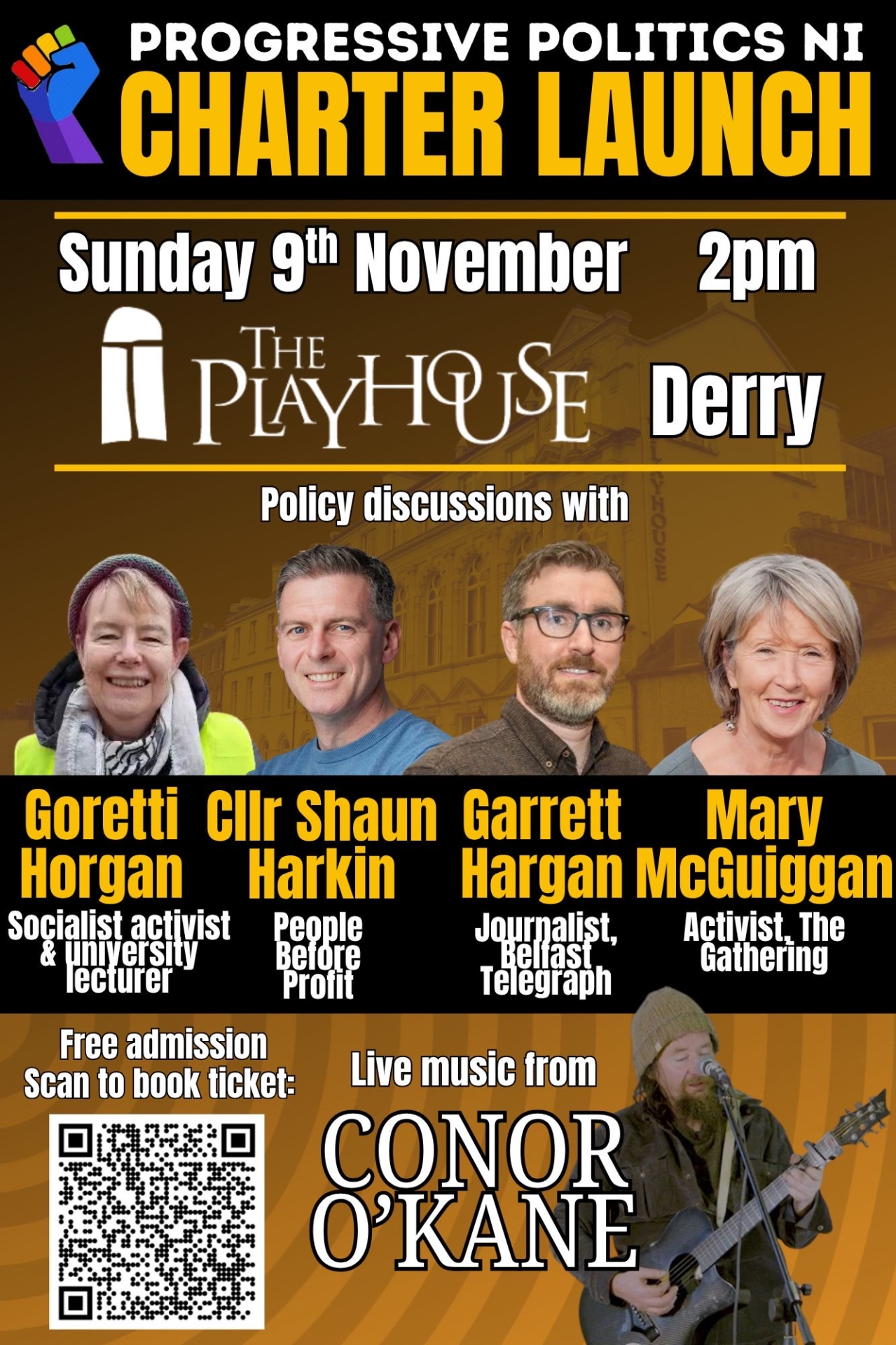 Progressive Politics NI (PPNI) will host its first-ever Charter launch at The Playhouse in Derry on Sunday, November 9 at 2.00pm.
