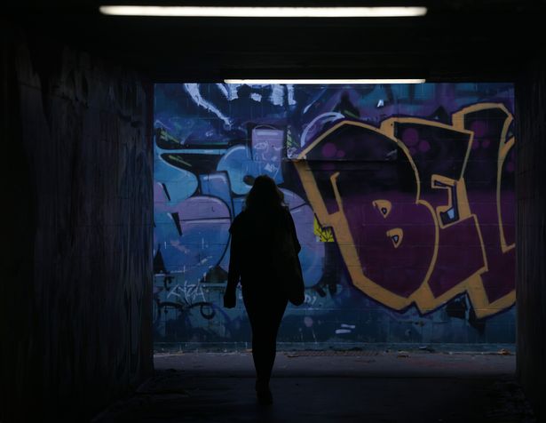 The underpass can feel dangerous, even during the daytime, with the woman pictured in near-darkness at lunchtime on Wednesday (October 29)(Image: Sean Hansford | Manchester Evening News)