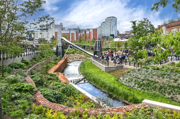 A park in Manchester city centre was evacuated tonight after a woman had fallen into a river. It is understood police officers rescued the woman from the River Medlock in Mayfield Park.